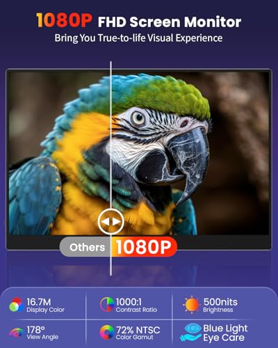 Specification: 15.6 Inch Portable Computer Monitor, Portable Monitor for Laptop,PC,MacBook,Phone, PS4, 1080P FHD Display with HDMI USB-C, Built-in Speaker with Leather Case, Travel Work Home Gaming Monitors Visit the ZUCWO Store 4.7 4.7 out of 5 stars (10) | Search this page