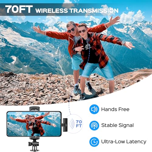 Specification: 2 Packs Wireless Lavalier Microphone for iPhone 17/16/15/iPad/Android/Pho