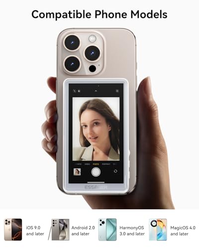 Specification: ESSGAER Magnetic Phone Vlog Selfie Monitor Screen, HD Display with Bluetooth