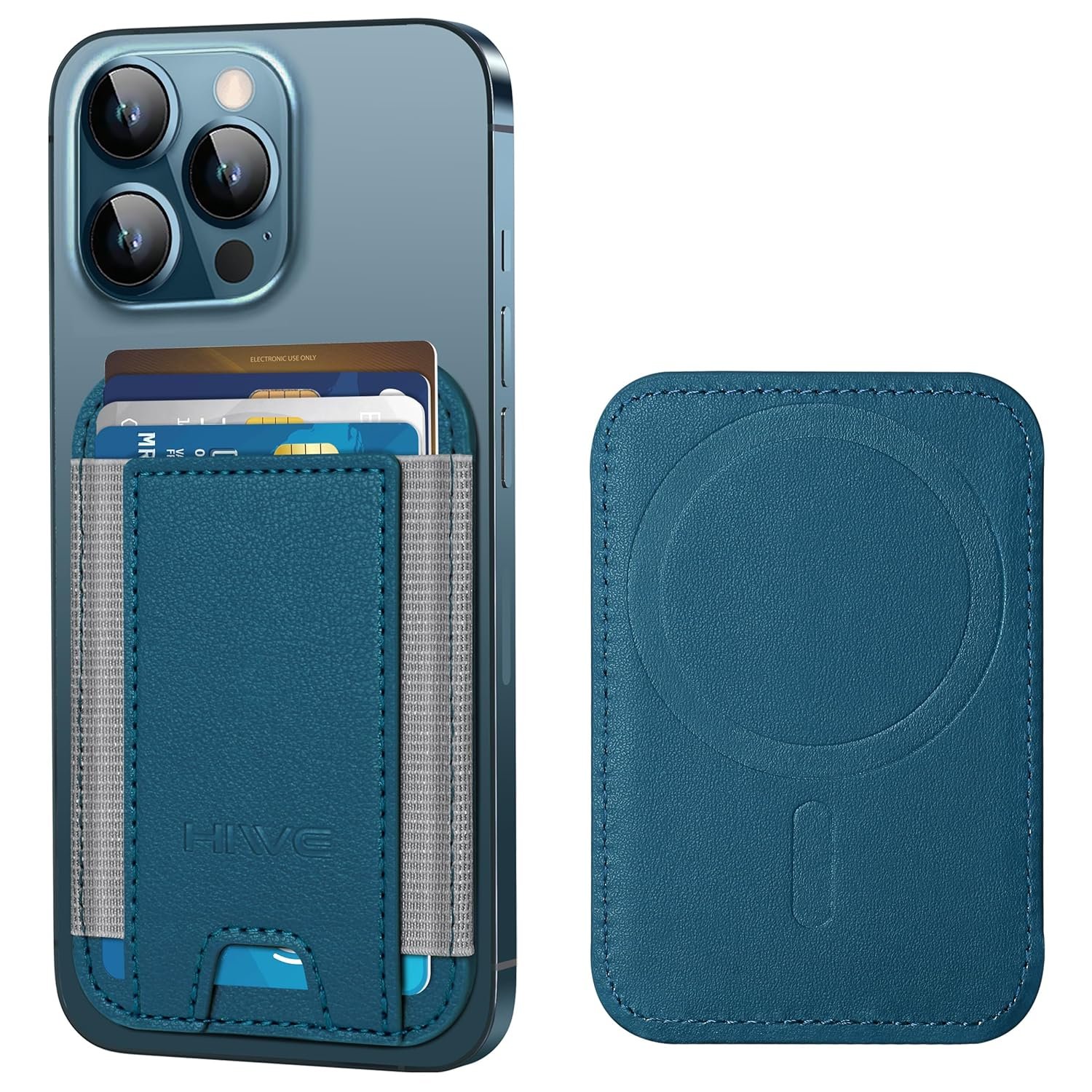 • At amazon.com you can purchase HiWe for MagSafe Wallet, Strongest Magnetic Wallet for iPhone 17/16/15/14/13/12 Series, 7 Cards Holder, Leather Minimalist Slim RFID, 1 Slot, Dark Blue & Grey for only