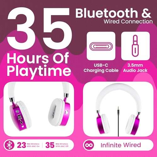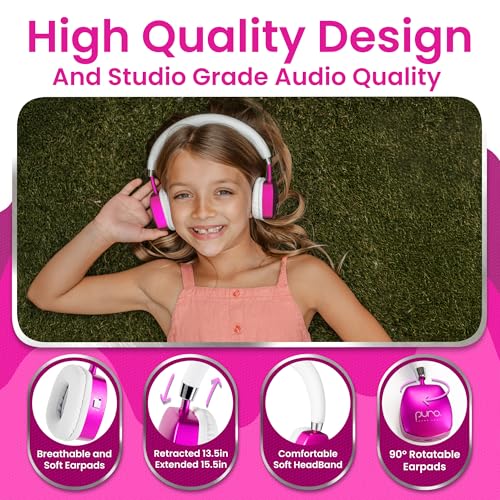 • At amazon.com you can purchase Puro Sound Labs PuroQuiet Plus Noise Cancelling Headphones for Kids, Bluetooth Kids On Ear Headphones with Mic, Lightweight On-Ear Design, Studio-Grade Sound (Pink) for only