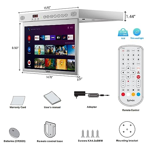 Specification: SYLVOX 15.6″ Under Cabinet Smart TV – 360° Rotation, 90° Flip-Down Screen, Wireless