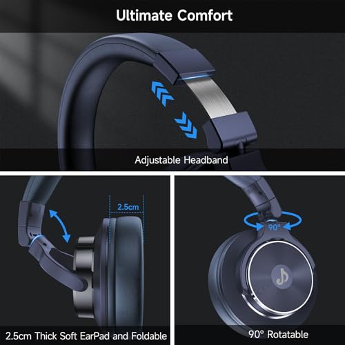Wired Over Ear Headphones, Studio Monitor & Mixing DJ Headphones with 50mm Neodymium Drivers and 1/