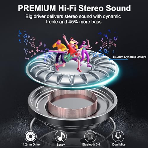 Wireless Earbuds, Bluetooth 5.4 Headphones, ENC Noise